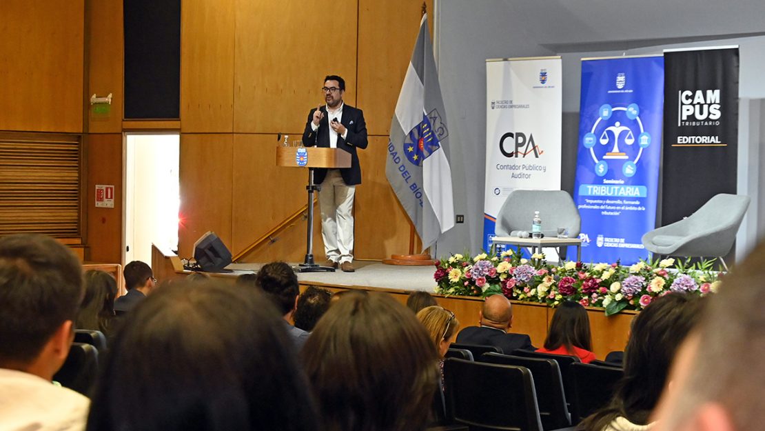El director de Finanzas y Administración UBB, Cristian Muñoz Carreño, saludó a la asistencia en representación del Rector Dr. Benito Umaña, y comentó la importancia de la legislación tributaria y los efectos macroeconómicos que generan. Además, manifestó que «una buena legislación permite que el país crezca y una mala legislación provoca que el país se estanque, la verdad es que los tributos no son un tema banal, por el contrario, son temas profundos e importantes”.
