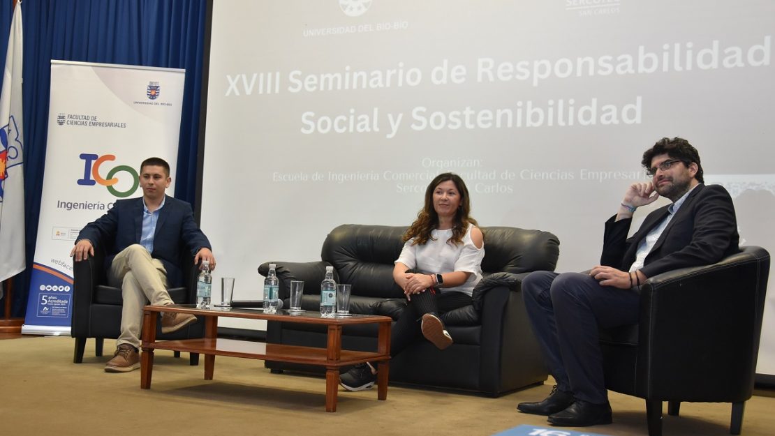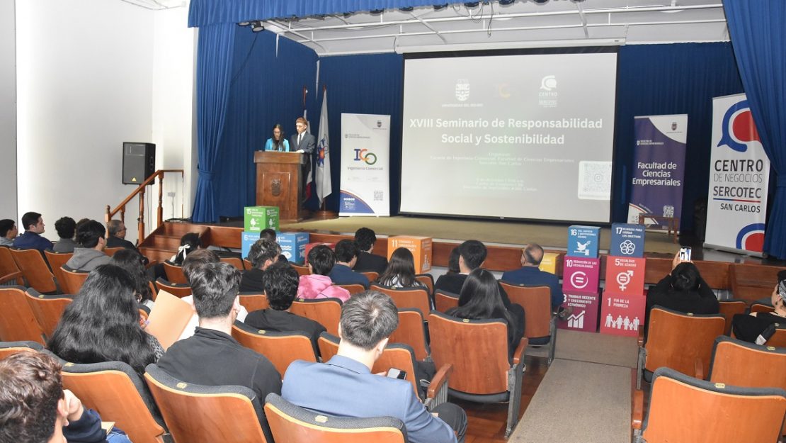 La Sala Schäfer del Centro de Extensión de la Universidad del Bío-Bío (UBB) fue el espacio elegido para realizar el XVIII Seminario de Responsabilidad Social y Sostenibilidad con el tema central “Sostenibilidad con propósito”, instancia organizada por el cuarto año de la asignatura Emprendimiento de Ingeniería Comercial (ICO) sede Chillán, curso que dirige el académico Tomás Zapata Soto, y el Centro de Negocios Sercotec San Carlos.