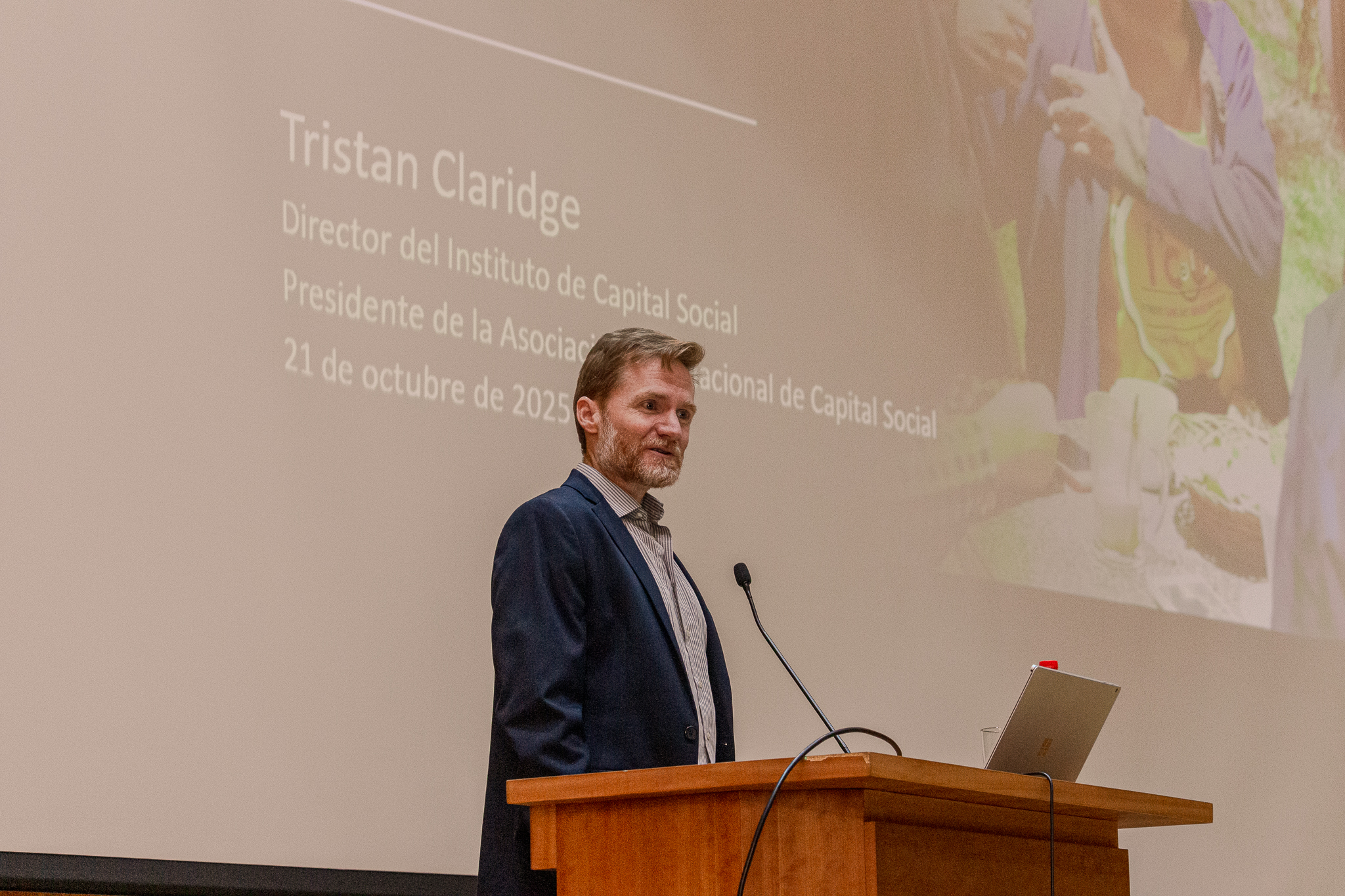 En la charla de Concepción, Claridge planteó que el capital de una sociedad no se reduce a lo físico o financiero. Junto al capital humano – las habilidades y conocimientos individuales – existe el capital social, expresado en las relaciones, la confianza y la reputación que las personas y organizaciones construyen a lo largo del tiempo. Cuando esas redes están vivas, explicó, actúan como un recurso que permite activar otros: facilitan la circulación de información, crean oportunidades y hacen posible emprender proyectos que, de manera aislada, serían inalcanzables.
