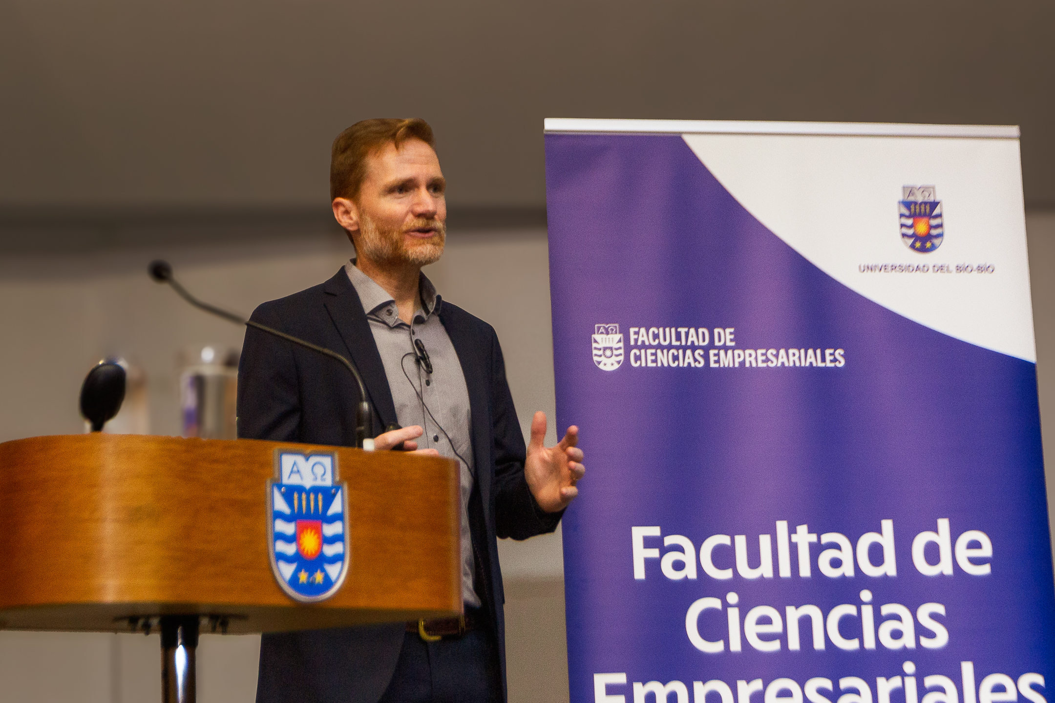 La visita de Tristan Claridge a la Facultad de Ciencias Empresariales de la Universidad del Bío-Bío marcó una serie de jornadas clave en el marco del aniversario 36 de FACE. El presidente de la International Social Capital Association desarrolló cuatro actividades formales en las sedes Concepción y Chillán: dos charlas magistrales tituladas “Capital Social y Desarrollo Territorial” – realizadas en el Aula Magna Concepción el martes 07 de octubre y en el Aula Magna Chillán el martes 21 de octubre – y espacios abiertos de conversación en torno a capital social, innovación y desarrollo integral, dirigidos a públicos universitarios, autoridades y representantes de instituciones del territorio.