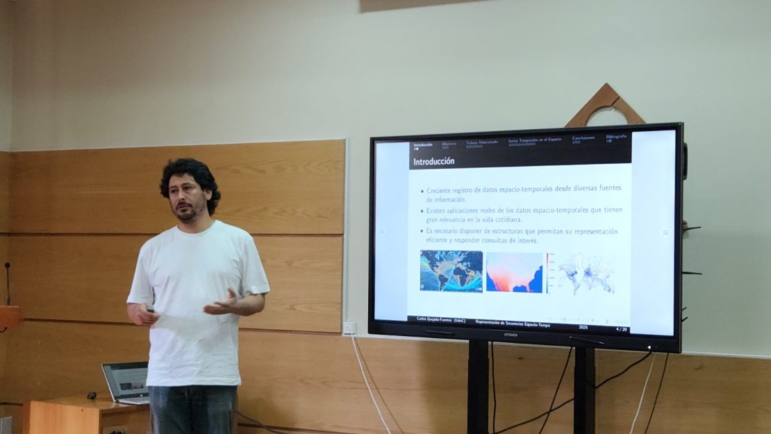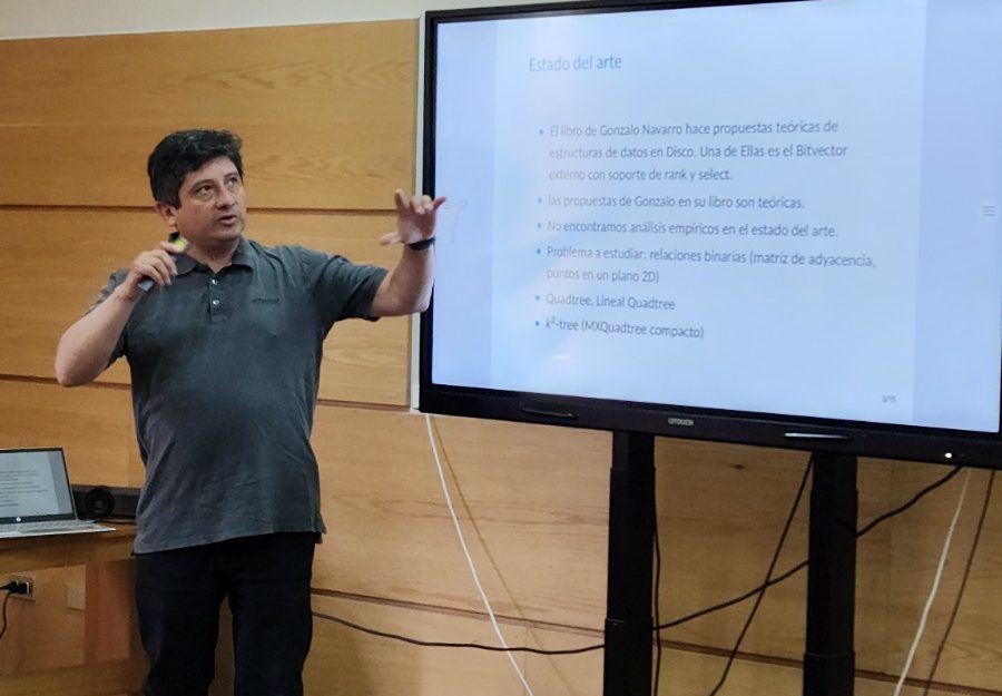 Asimismo, participaron académicos invitados de otras instituciones, como Benjamín Bustos de la Universidad de Chile, quien expuso Etiquetado y Búsqueda en Modelos 3D de Cerámica Antigua, y Benjamín Letelier, estudiante de doctorado en la Universidad de Concepción, con la presentación ROaD-CoSt: Routes Origins and Destinations Compactly Stored.