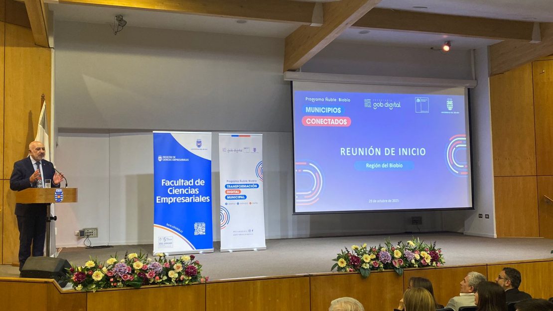 La Universidad del Bío-Bío realizó el lanzamiento oficial de la segunda etapa del Plan de Acompañamiento Digital Municipal para la implementación de la Ley 21.180 de Transformación Digital del Estado, iniciativa que busca fortalecer las capacidades institucionales y operativas de los municipios de las regiones del Biobío y de Ñuble. La ceremonia se desarrolló en las sedes de Concepción y Chillán, encabezadas por el rector Dr. Benito Umaña Hermosilla y la prorrectora Dra. Angélica Caro Gutiérrez, respectivamente.