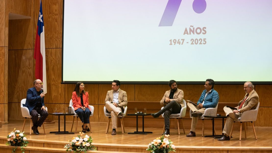 El panel de conversación fue integrado por la académica FACE UBB, Dra. Carola Figueroa, Ricardo Salman Aburdene, presidente de CorÑuble, José Concha Leiva, vicepresidente de la Cámara de Comercio de Chillán, Luis Durán, director de Incuba Ñuble UBB, y Francisco Neira, CEO founder GC Green Capitals.