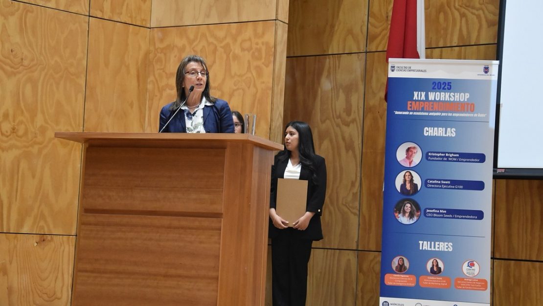 Para dar la bienvenida, se dirigió a la asistencia la decana de la Face, Dra. Elizabeth Grandón Toledo, quien destacó que en la carrera de Ingeniería Comercial “el emprendimiento es un sello formativo fundamental. Nuestros estudiantes aprenden a identificar oportunidades, diseñar soluciones, liderar proyectos y generar impacto real. Actividades como este workshop enriquecen su formación al ofrecer experiencias de aprendizaje directas con actores destacados del ecosistema emprendedor chileno”.