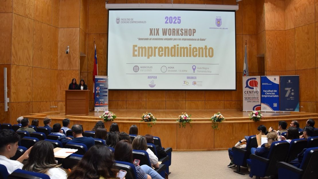 La actividad, realizada en el Aula Magna del campus Fernando May, y que contó con el apoyo de Centro de Negocios Sercotec San Carlos, se enmarca en la asignatura de Emprendimiento de Ingeniería Comercial (ICO) de la Facultad de Ciencias Empresariales (Face), dictada por el académico Juan Carlos Yévenes.